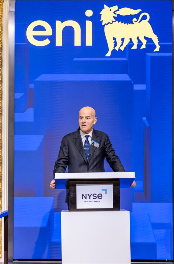 Al centro della foto l’Amministratore Delegato di Eni presso la New York Stock Exchange.