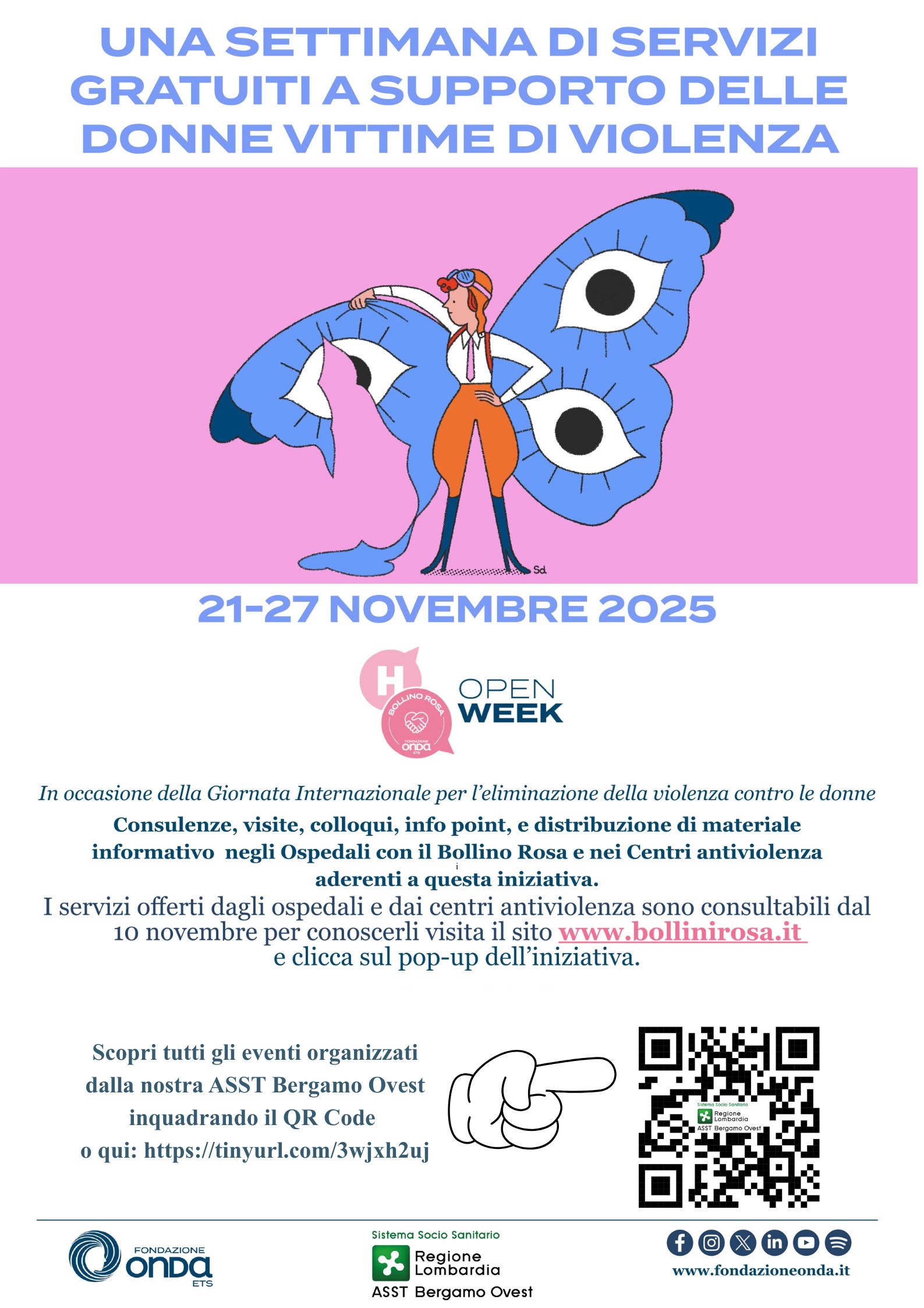 Anche l’ASST Bergamo Ovest ha aderito e, grazie all’impegno dei propri professionisti, ha organizzato una serie di eventi e attività rivolte a target diversi; infatti, esistono molti servizi sul nostro vasto territorio, agganciati alle reti antiviolenza, che possono offrire percorsi di accoglienza protetta, fino a progetti di reinserimento e sostegno concreto.