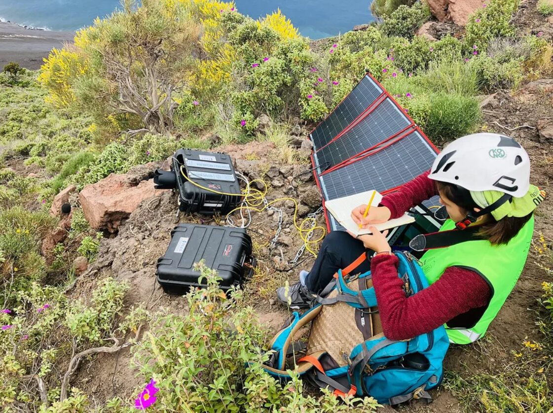 [image: Una ricercatrice usa SKATE per monitorare un vulcano. Foto di