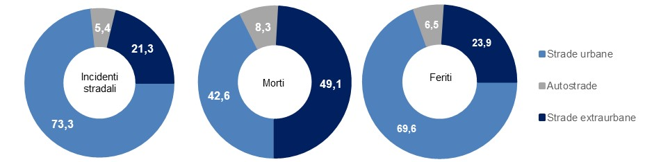 incidenti avvengono più spesso sulle strade urbane (73,3%), ma quasi la metà delle vittime (49,1%)