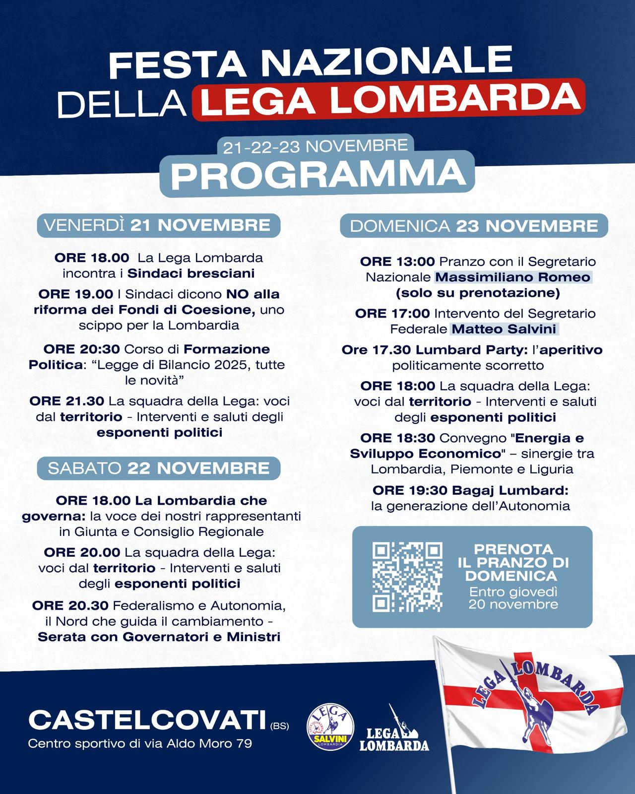 Milano, 13 NOV – Torna l’appuntamento con la festa nazionale della Lega