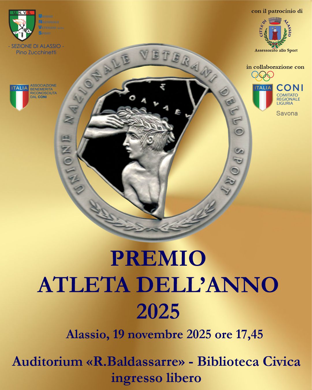 La Sezione UNVS di Alassio “Pino Zucchinetti”, con il patrocinio del Comune di Alassio – Assessorato allo Sport ed in collaborazione con il CONI Savona, celebra uno degli appuntamenti più significativi del proprio calendario: la cerimonia “Atleta dell’Anno”, in programma mercoledì 19 novembre alle ore 17.45 presso l’Auditorium R. Baldassarre della Biblioteca Civica di Alassio, in piazza Airaldi e Durante.
