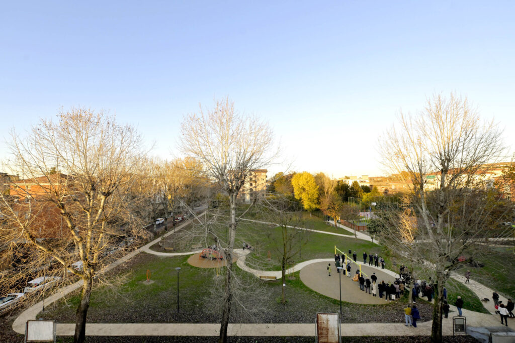 Il parco si arricchisce di spazi dedicati all’attività fisica e al gioco: sono state installate attrezzature calisteniche e giochi inclusivi per bambini e bambine delle fasce d’età 2-5 anni e 5-12 anni.