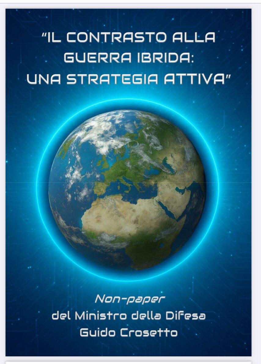 «La guerra ibrida — come evidenziato nel documento — appare episodica ma non lo è, è continua e costante, visibile ed invisibile; si sviluppa sotto traccia e attacca le infrastrutture strategiche, i sistemi nevralgici della società e minaccia le democrazie e la coesione sociale. L’Italia deve difendersi adottando un approccio sistemico, che coinvolga istituzioni, Forze Armate, mondo digitale ed industria, in piena coerenza con la cornice NATO, UE e G7».