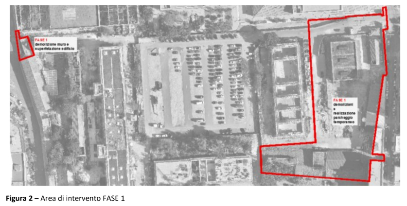 CON L’ALLESTIMENTO DEL PARCHEGGIO TEMPORANEO E L’ESECUZIONE DELLE DEMOLIZIONI