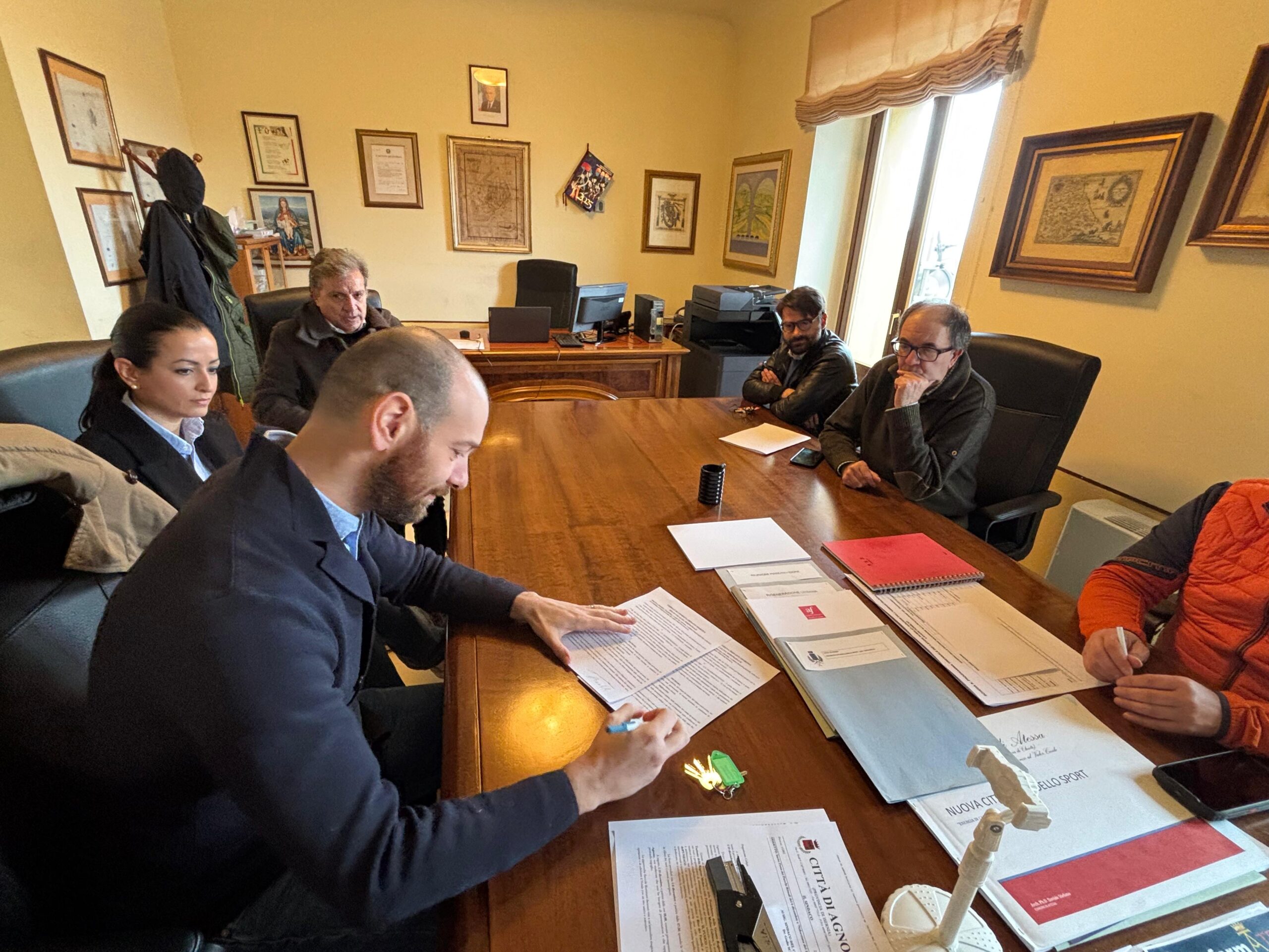 L’Amministrazione comunale si è incontrata, questa mattina, con i gestori dei nuovi impianti piscina-palestra. La ditta 3D Wellness, con l’Amministratore delegato Piero Del Duca, ha sottoscritto i verbali di consegna di tutti gli impianti.