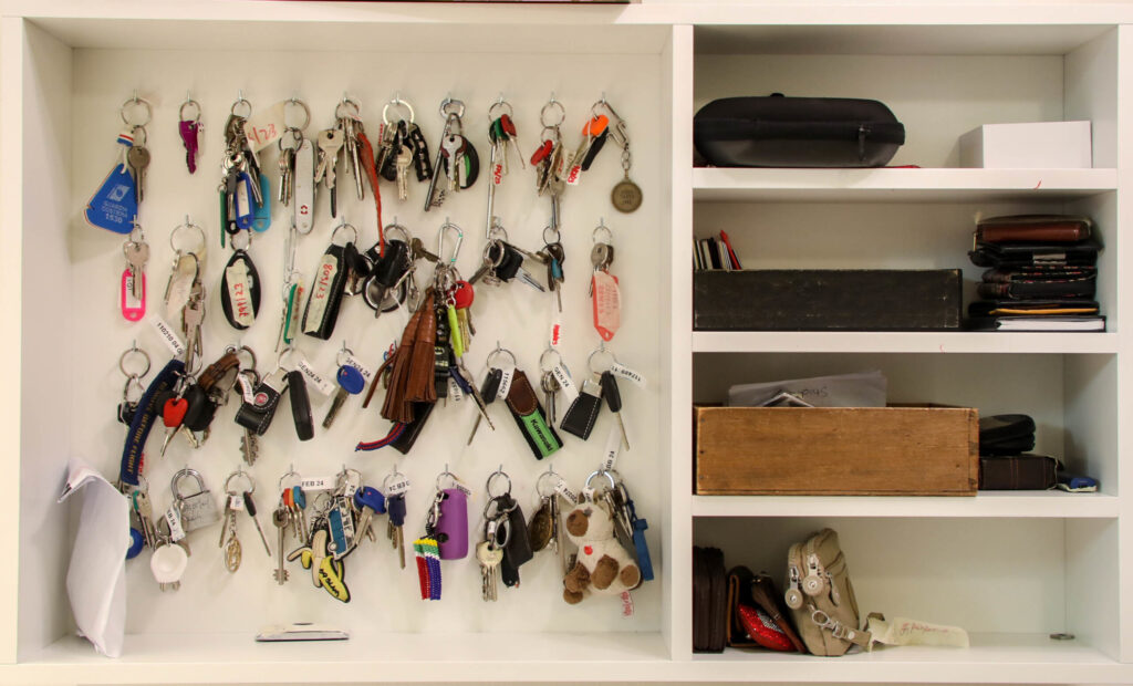 cartelle, libri, flauto, chiavi, portachiavi, occhiali, berretto, cappello, cappellino,