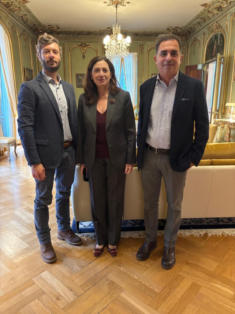 Nella foto: il direttore Agata con l’ambasciatrice Rosini e Luca Cavinato, vice segretario generale della