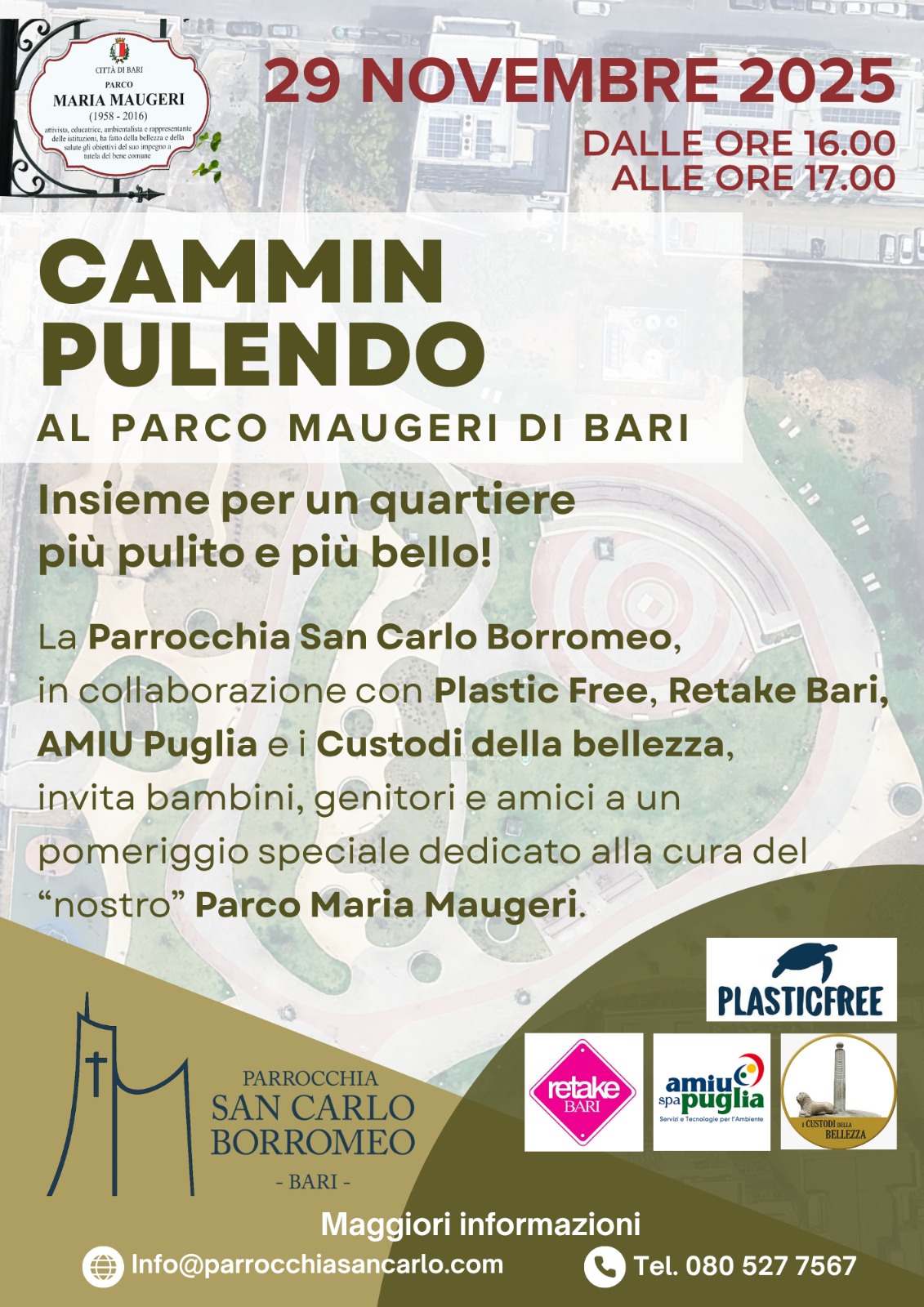 L’assessora al Clima, alla Transizione ecologica e all’Ambiente Elda Perlino parteciperà domani, sabato 29 novembre, a “Cammin pulendo”, l’appuntamento promosso dalla Parrocchia San Carlo Borromeo nel parco Maria Maugeri, nel quartiere Libertà.