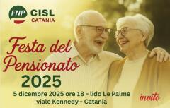 La Federazione Nazionale Pensionati CISL Catania con la Festa del Pensionato 2025 li celebra – venerdì 5 dicembre alle ore 18 al Lido Le Palme – con un momento identitario, di comunità e memoria condivisa.