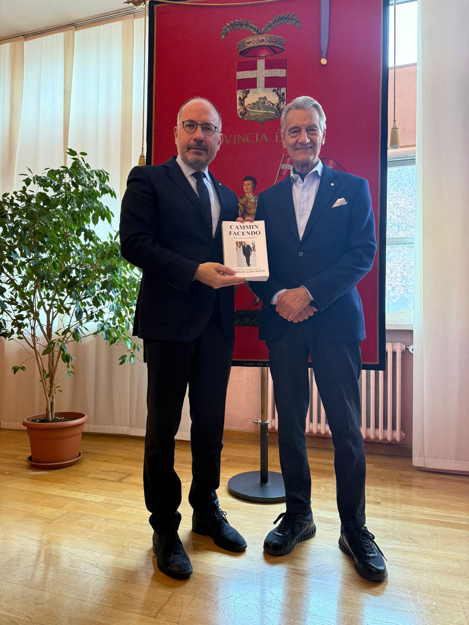 Giorgio Galvagno ha consegnato al Sindaco Rasero una copia del suo libro “Cammin Facendo”, un racconto familiare che comprende tutte le fasi della sua vita: dall’infanzia ad oggi descrivendo minuziosamente l’uomo, il ruolo politico, la famiglia e la sua città. Il libro rappresenta anche un contributo importante alla storia e alla memoria di Asti perché le vicende personali e familiari di Galvagno si intrecciano con quelle della città e dei suoi personaggi. Il racconto offre poi uno sguardo profondo sulla vita e sull’esperienza anche dell’amministratore pubblico, mettendo in evidenza la centralità della famiglia e degli amici come pilastri fondamentali del suo percorso.