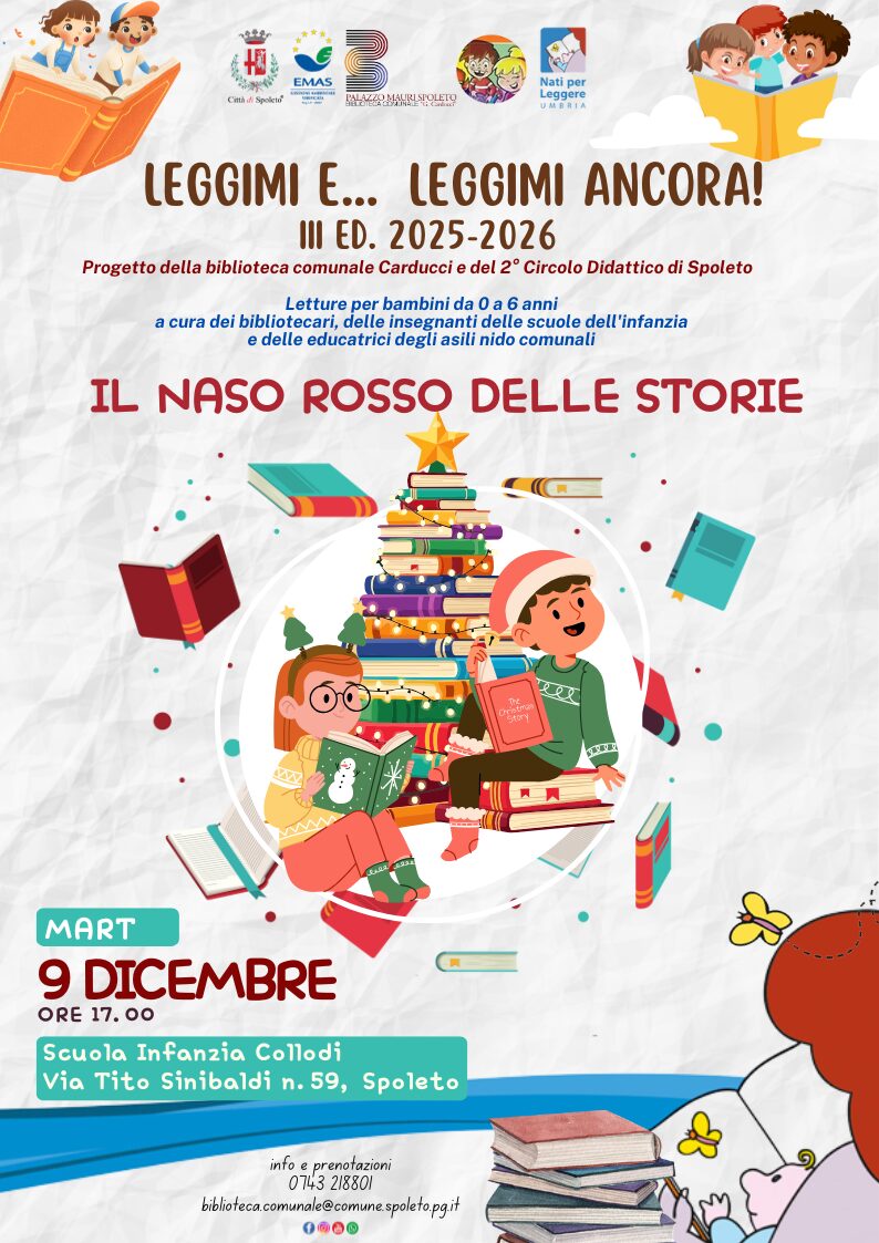 “Leggimi e… Leggimi ancora!”, giunto alla terza edizione, è un progetto di lettura ad alta voce per la fascia 0-6 anni, organizzato dalla Biblioteca comunale “G. Carducci” e dal 2° Circolo Didattico di Spoleto, partner del Patto locale della lettura e inserito nel Programma Nati per Leggere.