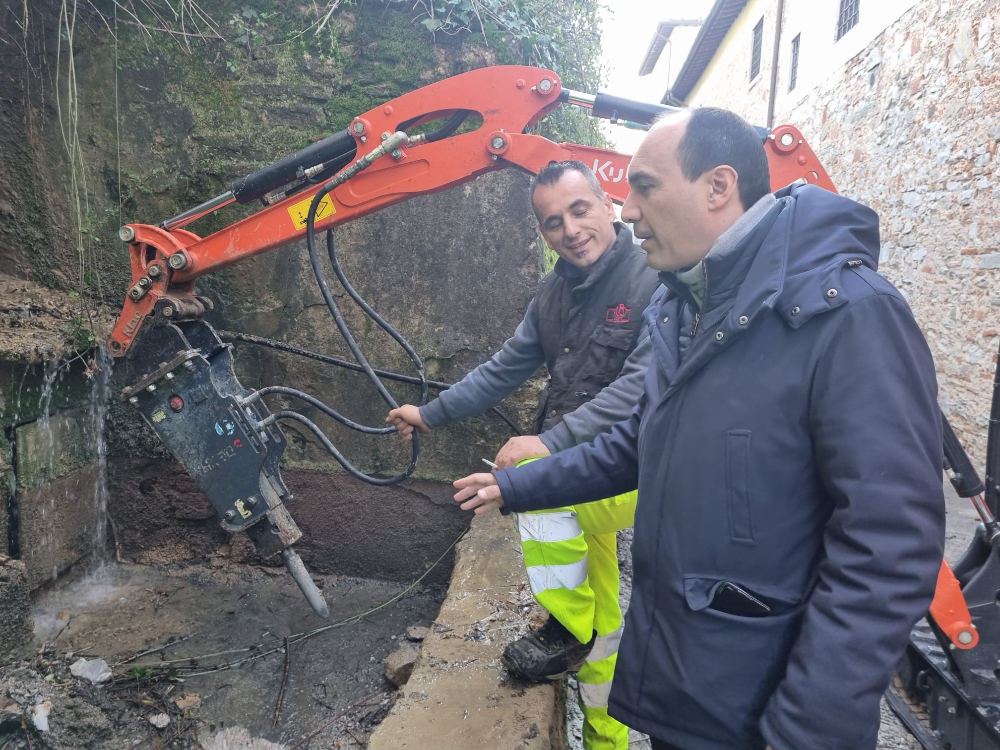 Sopralluogo del sindaco Simone Calamai. L’intervento prevede il rifacimento, attraverso una nuova tubazione, del sistema di regimazione delle acque che arrivano dal versante collinare