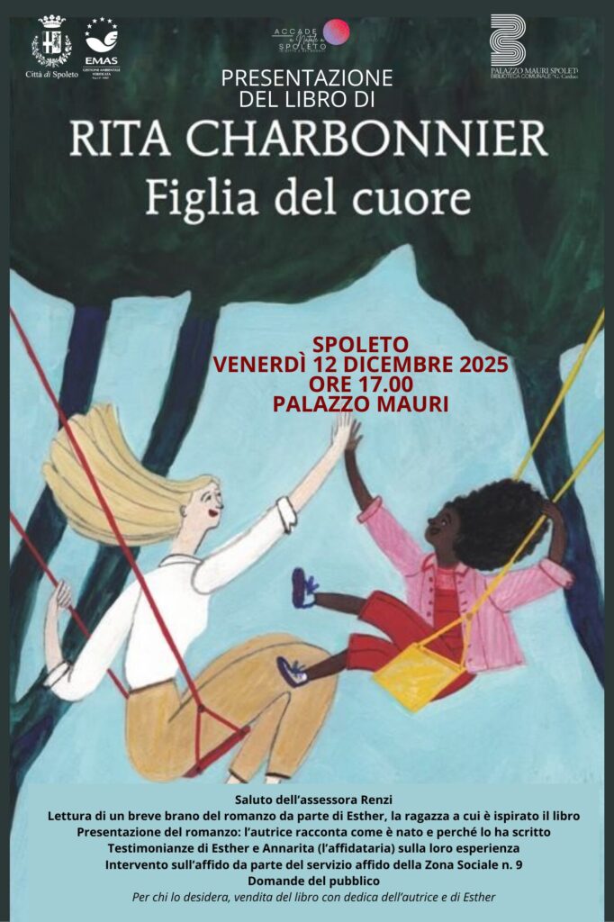 (AGENPARL) - Roma, 4 Dicembre 2025(AGENPARL) – Thu 04 December 2025 FIGLIA DEL CUORE: A SPOLETO LA PRESENTAZIONE DEL ROMANZO DI RITA CHARBONNIER ISPIRATO A UNA STORIA VERA DI AFFIDO FAMILIARE