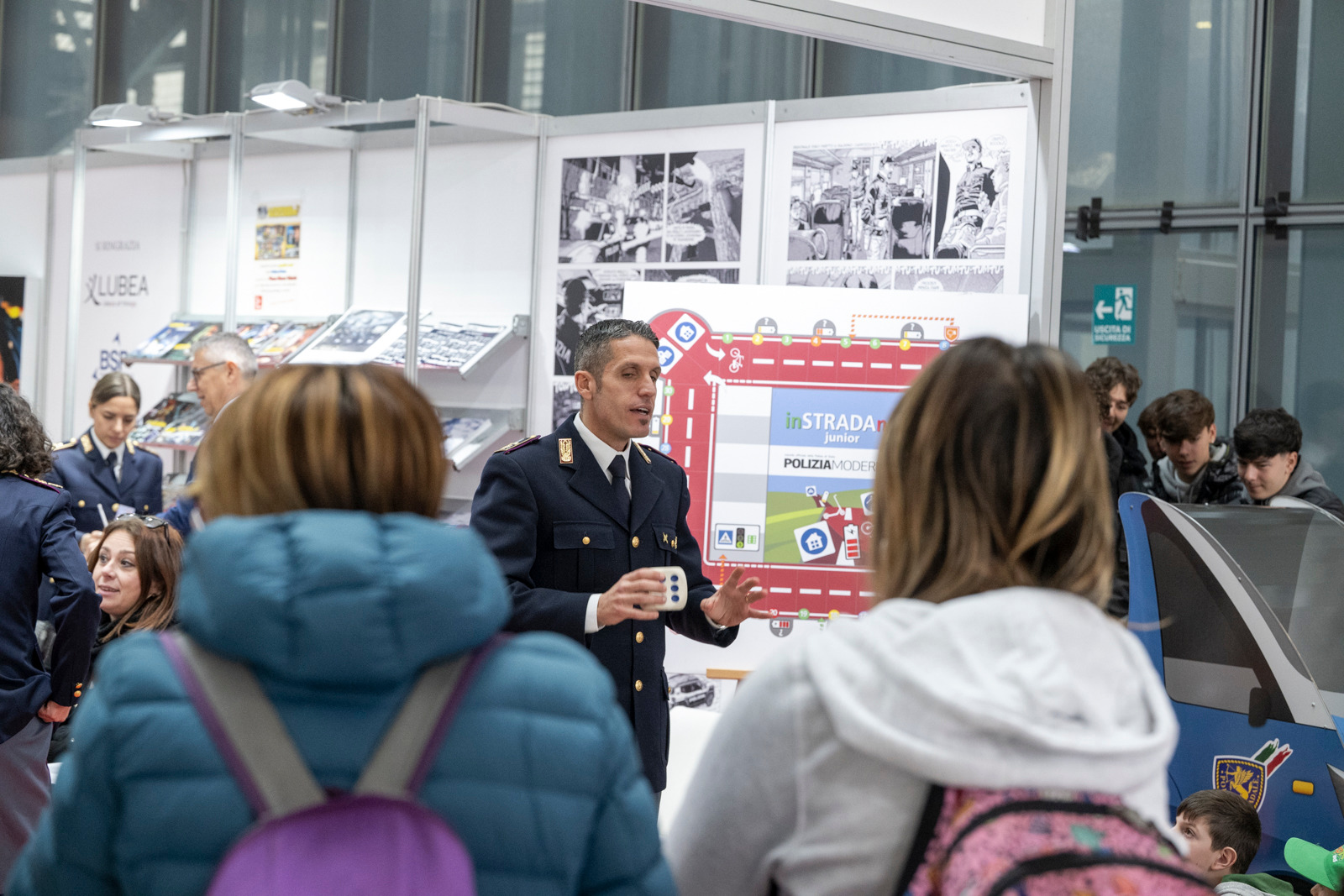 Lo spazio espositivo ha accolto numerosi visitatori interessati alle attività istituzionali e alle iniziative editoriali promosse dalla Polizia di Stato per sensibilizzare il pubblico su temi di legalità e sicurezza.