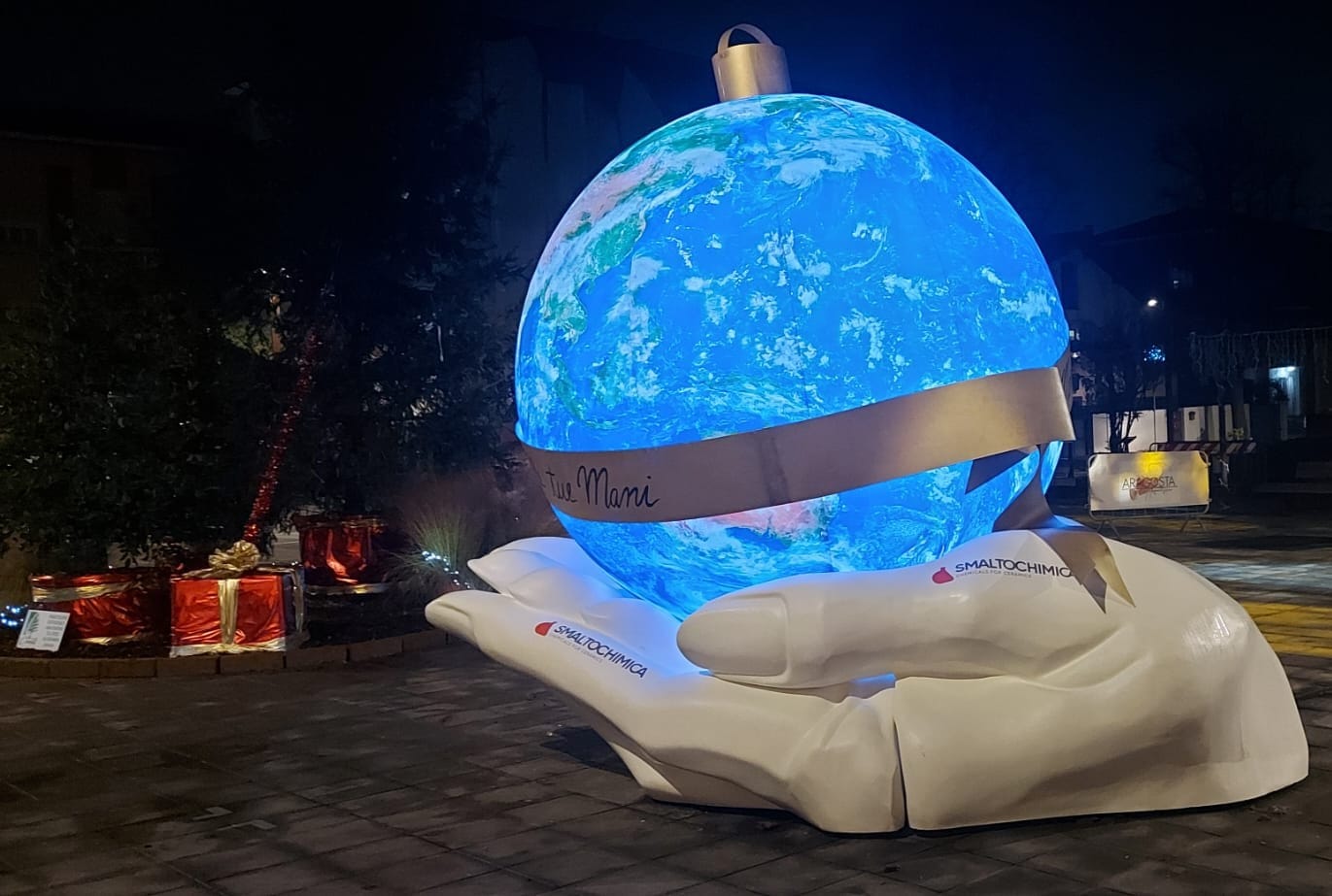 Quest’anno Lunati Manufacturing ha realizzato un’opera d’arte pensata per Fiorano: una gigantesca pallina di Natale a forma di mappamondo luminoso, sorretta da due mani. L’idea è stata concepita dal Comitato Fiorano in Festa, che organizza gli eventi in centro, in collaborazione con Smaltochimica e con il patrocinio del Comune. “L’installazione s’intitola ‘Il mondo è nelle tue mani’ – spiega l’artista – perché racchiude un messaggio semplice ma essenziale: ognuno di noi ha un ruolo nella cura e nel futuro del pianeta e della propria comunità. Le mani sono importanti: contengono, mostrano, abbracciano, a volte può bastare poco per cambiare le cose ”.