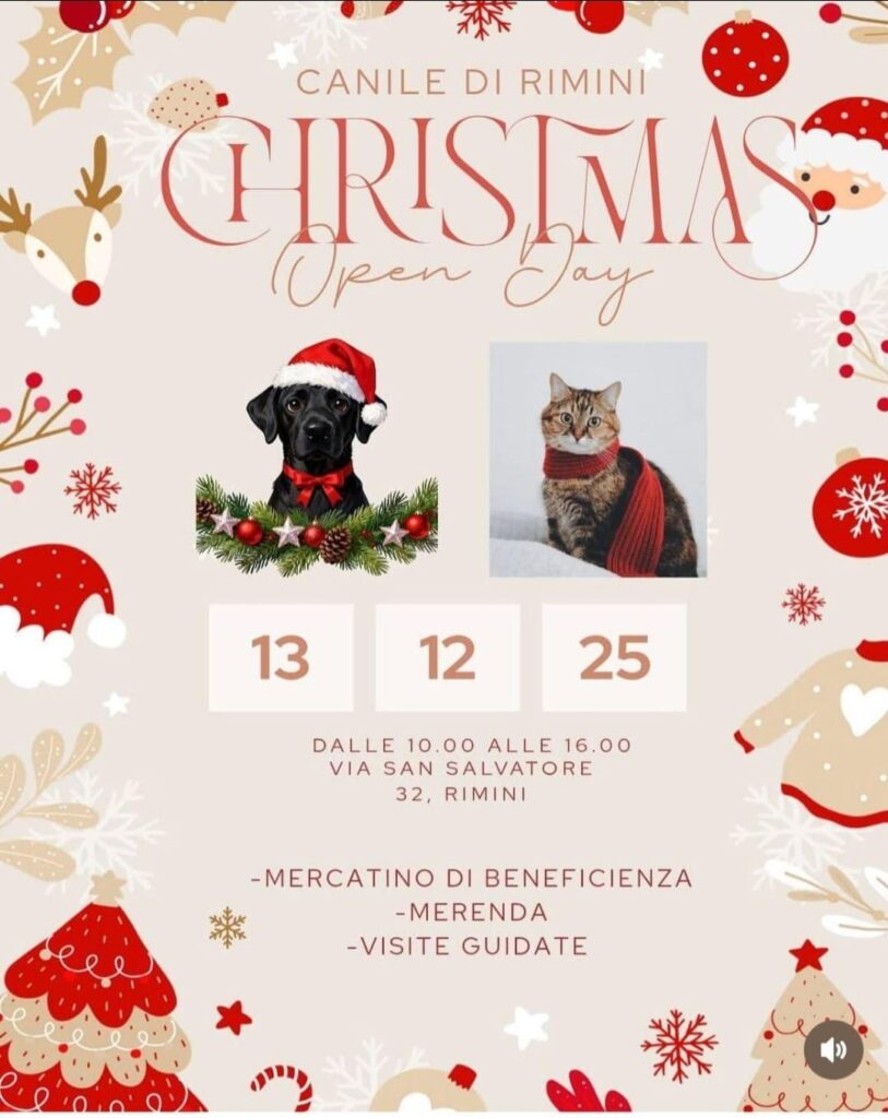 Sabato 13 dicembre dalle 10.00 alle 16.00 il canile comunale “Stefano Cerni” di Rimini apre le porte alla cittadinanza per un open day ricco di iniziative. La giornata prevede visite guidate alla struttura e un mercatino natalizio solidale con felpe, tazze, medagliette anti-smarrimento e giochi in legno per bambini. L’intero ricavato sarà destinato alle emergenze sanitarie e al miglioramento della qualità di vita degli ospiti a quattro zampe del canile.