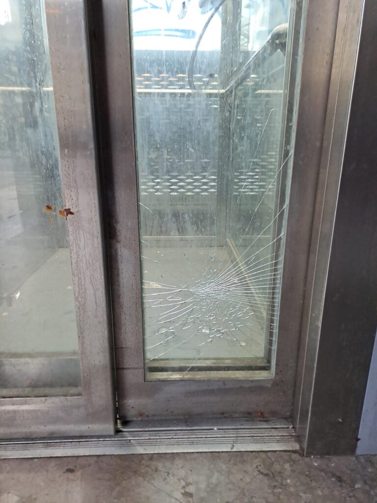 vandalici: prima rottura di un vetro esterno, poi distruzione completa di