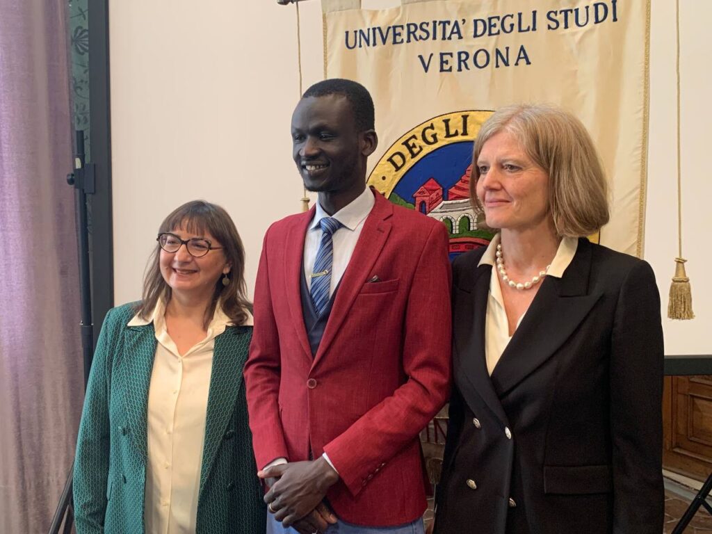 È con gioia e soddisfazione che l’università di Verona ha celebrato, giovedì 11 dicembre, nella Sala Barbieri di Palazzo Giuliari, la laurea del primo studente arrivato in Ateneo attraverso i corridoi universitari per studenti rifugiati del programma Unicore – University Corridors for Refugees, promosso da UNHCR, l’Alto commissariato delle Nazioni Unite per i rifugiati, in collaborazione con 37 università italiane. Si tratta di Apollo Pach, originario del Sud Sudan e rifugiato in Kenya, giunto a Verona nell’autunno del 2023 grazie all’edizione 5.0 del progetto.