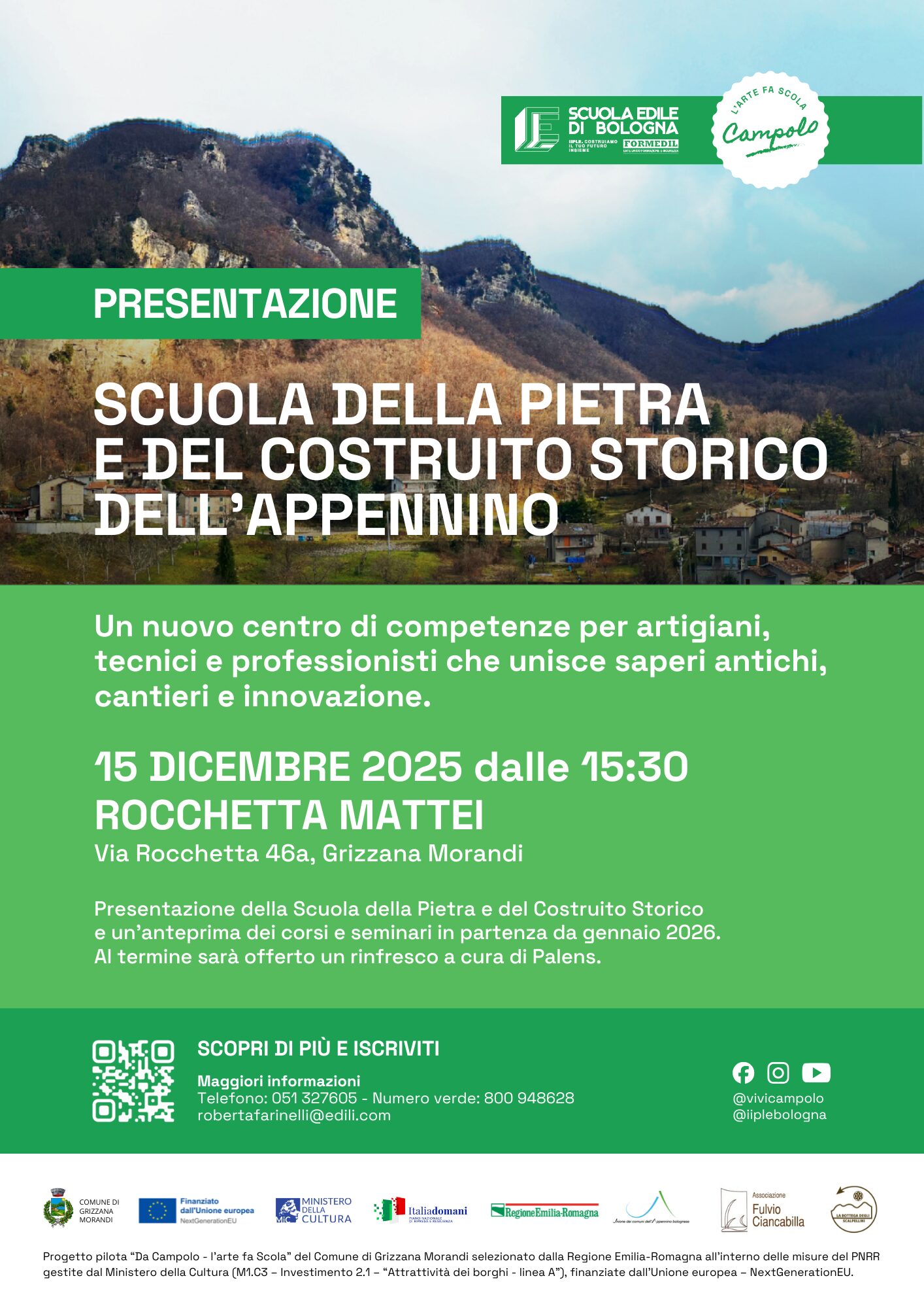 Invito Regione: Montagna. Progetto culturale ‘Da Campolo – L’Arte fa Scola’ finanziato con risorse del Pnrr: nasce la ‘Scuola della Pietra e del Costruito storico dell’Appennino’. Presentazione lunedì 15 dicembre