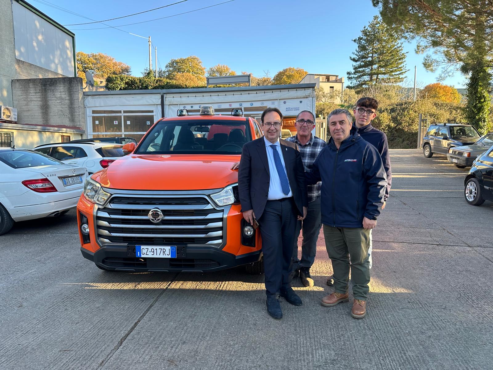 Alla consegna del mezzo il sindaco Giuseppe Ferrarello e il consigliere