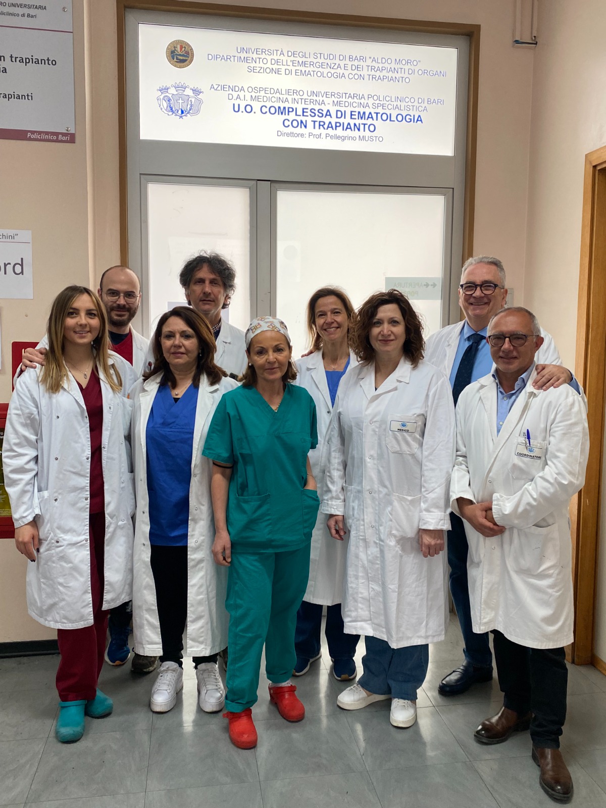 “Anche in tempi di terapie innovative, come le CAR-T, – ricorda Paola Carluccio, responsabile del Programma trapianti in Ematologia del Policlinico – il trapianto allogenico può rappresentare l’unico trattamento in grado di guarire definitivamente, laddove fattibile, tumori del sangue come le leucemie acute, le neoplasie mielodisplastiche, la mielofibrosi, o patologie non neoplastiche, come l’aplasia midollare. In particolare, il trapianto effettuato con cellule staminali emopoietiche provenienti da donatori non familiari, noti come “Matched Unrelated Donor” (MUD), è oggi sempre più frequentemente utilizzato, a causa del ridotto numero dei donatori familiari. In quest’ambito, presso il Centro Trapianti dell’Ematologia del Policlinico di Bari – continua Carluccio – sono stati ad oggi effettuati 408 trapianti allogenici, di cui 24 nel 2025, 11 dei quali da donatori MUD provenienti da vari Paesi e identificati nei registri internazionali. I risultati ottenuti sono del tutto in linea con quelli riportati nelle casistiche dell’European Society for Blood and Marrow Transplantation (EBMT) e dal Centro Nazionale Trapianti.“