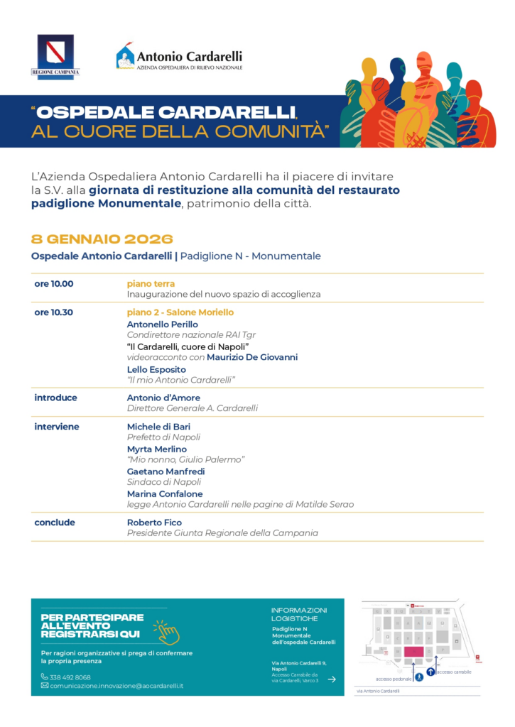 Napoli, 7 gennaio 2026 – È previsto per domani, giovedì 8 gennaio 2026, l’evento di restituzione alla comunità del restaurato Padiglione monumentale dell’ospedale Cardarelli, patrimonio della città.