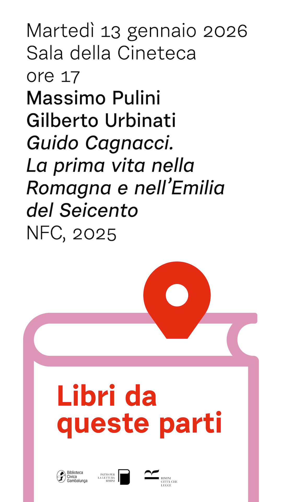 Martedì 13 gennaio 2026, data indicata dalle fonti come una delle possibili giornate di nascita di Guido Cagnacci la Biblioteca civica Gambalunga ospita, nell’ambito della rassegna “Libri da queste parti “, la presentazione del volume Guido Cagnacci. La prima vita nella Romagna e nell’Emilia del Seicento di Massimo Pulini e Gilberto Urbinati, un ideale omaggio a uno dei più inquieti e moderni protagonisti del Seicento italiano.