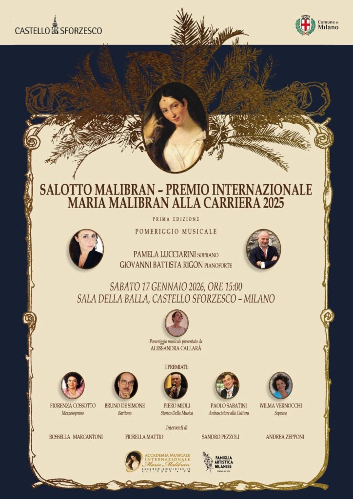 La manifestazione milanese segue la prima edizione del Premio, che si è tenuta domenica 29 giugno 2025 ad Altidona (FM), presso la Sala Colonna dell’Accademia Malibran, nell’ambito di Salotto Malibran – Serata di Gala. Quel primo appuntamento ha sancito la nascita ufficiale del Premio, trovando ora naturale continuità nella città di Milano, da sempre punto di riferimento della storia musicale internazionale.