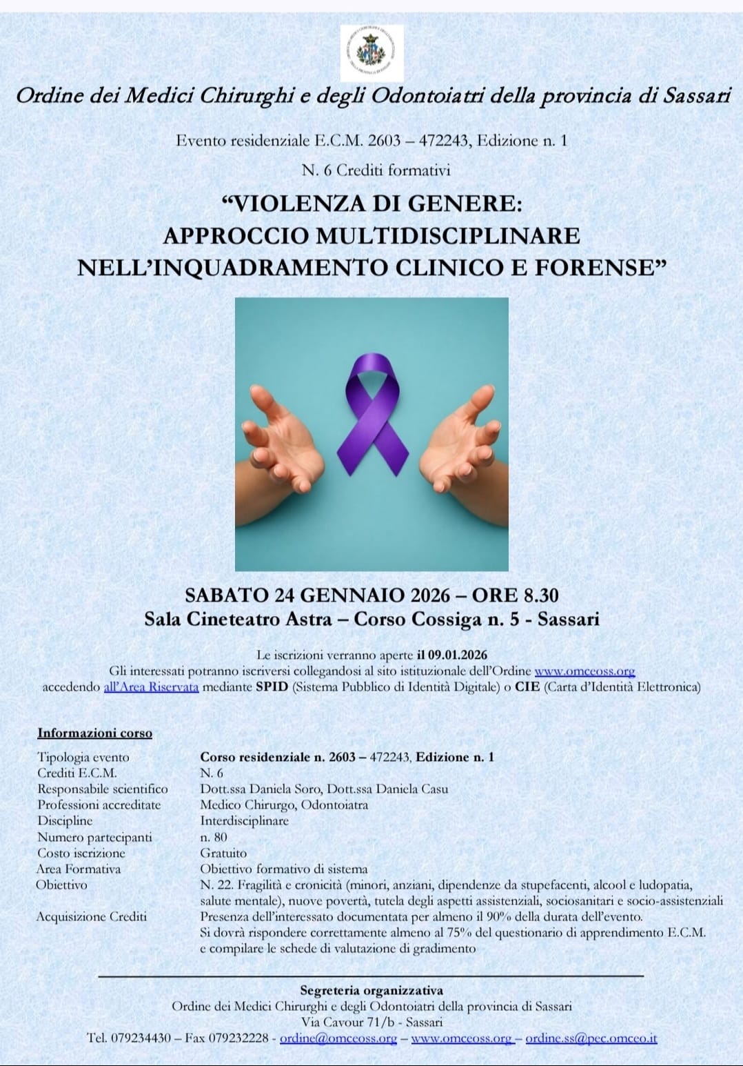 (AGENPARL) - Roma, 26 Gennaio 2026(AGENPARL) – Mon 26 January 2026 Ordine dei Medici Chirurghi e degli Odontoiatri della Provincia di Sassari