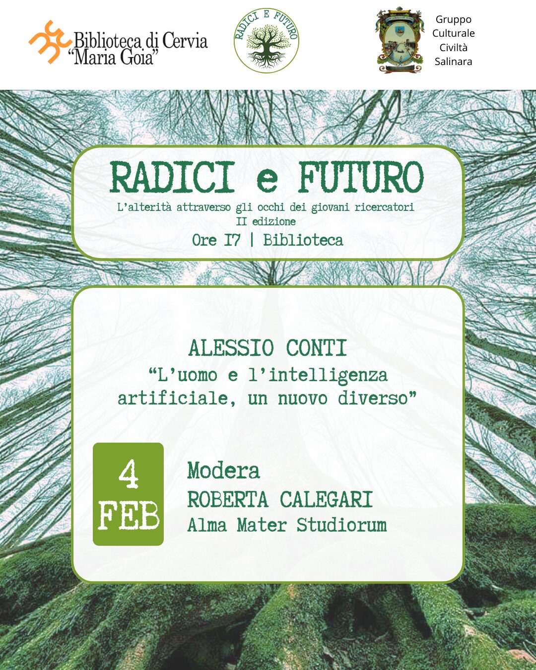 La rassegna Radici e Futuro. L’alterità attraverso gli occhi dei giovani ricercatori è organizzata dalla Biblioteca Comunale Maria Goia, in collaborazione con lo storico e ricercatore Luca Bagnolini e il Gruppo Culturale Civiltà Salinara.