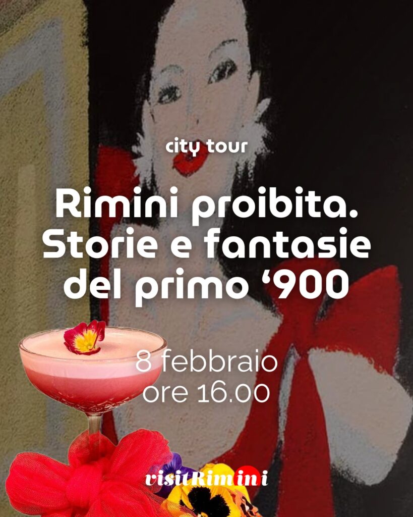 Nel pomeriggio, un altro itinerario condurrà i partecipanti in un viaggio nella Rimini dei primi del Novecento, attraverso il Cocktail Tour Rimini proibita. Storie e fantasie del primo ‘900 proposto da Visit Rimini. Partendo da Corso d’Augusto, si scopriranno i luoghi più nascosti e meno conosciuti della città. Un percorso tra storia, costumi e luoghi non convenzionali, tra stradine appartate, vie nascoste e piazzette che un tempo ospitavano case di tolleranza e ritrovi notturni. Un’immersione in quella Rimini del primo Novecento che Federico Fellini ha saputo trasformare in mito eterno nelle sue opere più celebri: I vitelloni, La strada, Amarcord. Al termine un aperitivo ispirato ai protagonisti del tour.