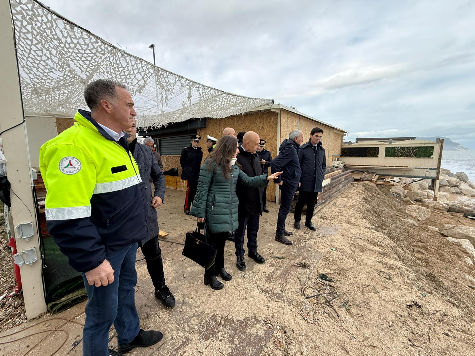 Mareggiata a Porto Recanati, sopralluogo del presidente Acquaroli: “Ripristino e sicurezza priorità assolute, lavoriamo già per la stagione estiva”