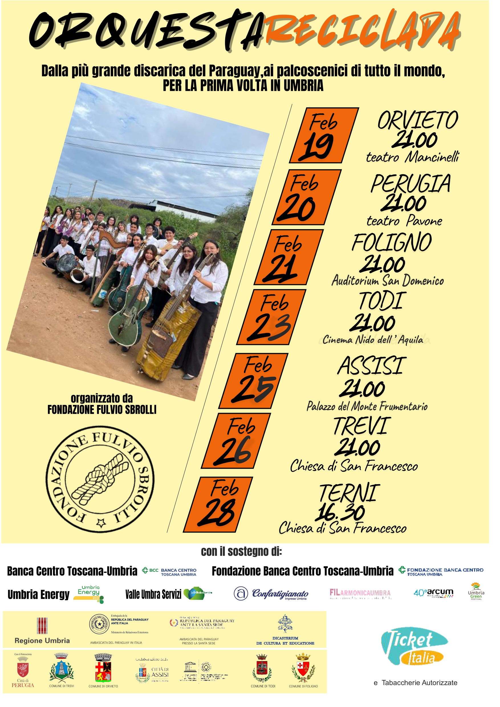 itineranti”, porta in scena l’Orchestra Riciclata di Cateura (Paraguay),
