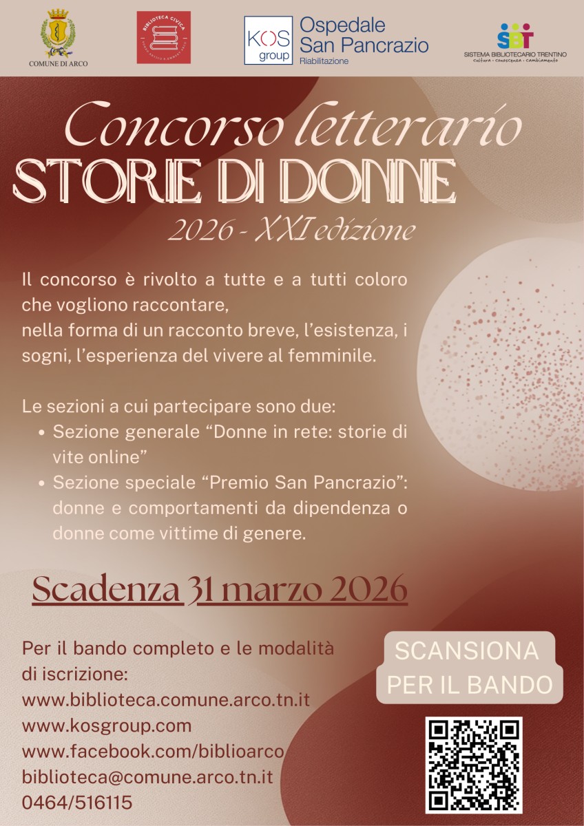 per l’anno 2026 la ventunesima edizione del concorso letterario “Storie di donne”.