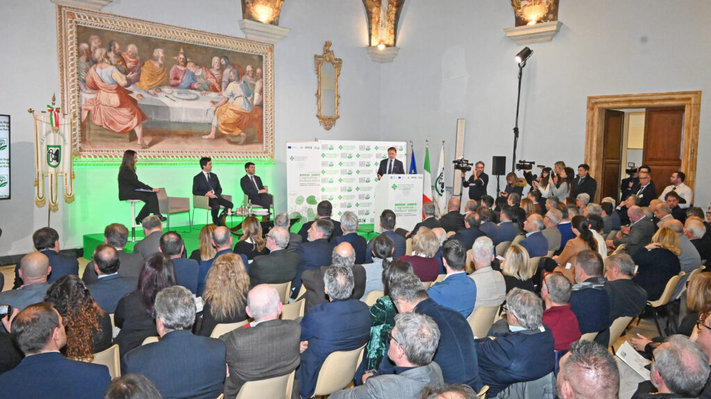 Presenti il vicepresidente e assessore all’Agricoltura Enrico Rossi, il presidente della Commissione Agricoltura della Camera dei Deputati Mirco Carloni, il presidente della Regione Marche Francesco Acquaroli e il ministro dell’Agricoltura, della Sovranità Alimentare e delle Foreste Francesco Lollobrigida.