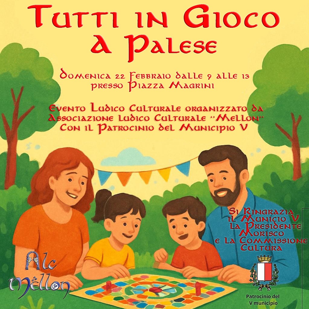 Si svolgerà domenica 22 febbraio, dalle ore 9 alle 13, in piazza Magrini, l’iniziativa “Tutti in gioco a Palese”, l’iniziativa voluta e promossa dal Municipio V per animare la piazza pedonale.