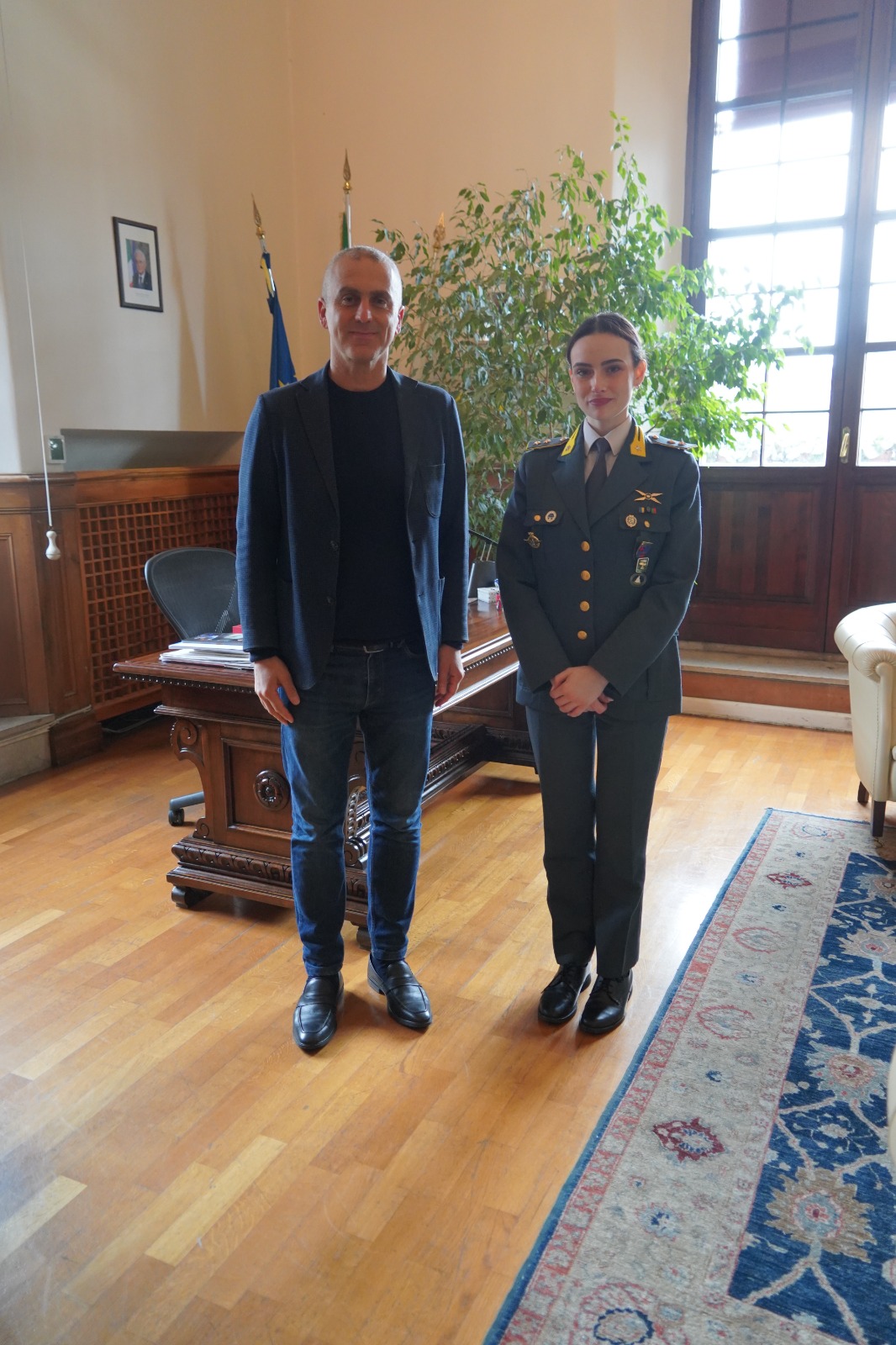 Il Sindaco Jamil Sadegholvaad ha ricevuto questa mattina, nel suo ufficio la Tenente Pilota Flavia Gnoffo, nuovo Comandante del Nucleo Operativo della Sezione Aerea della Guardia di Finanza di Rimini, in un incontro istituzionale. Nel corso del colloquio, il primo cittadino ha voluto esprimere personalmente il proprio più sentito benvenuto alla giovane ufficiale, rivolgendole al contempo le più sincere congratulazioni per il prestigioso incarico appena assunto.