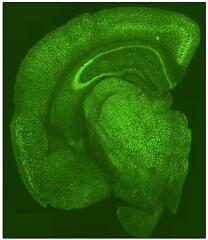 Immagine 2. Immagine della localizzazione di MeCP2 (in verde) nel cervello adulto